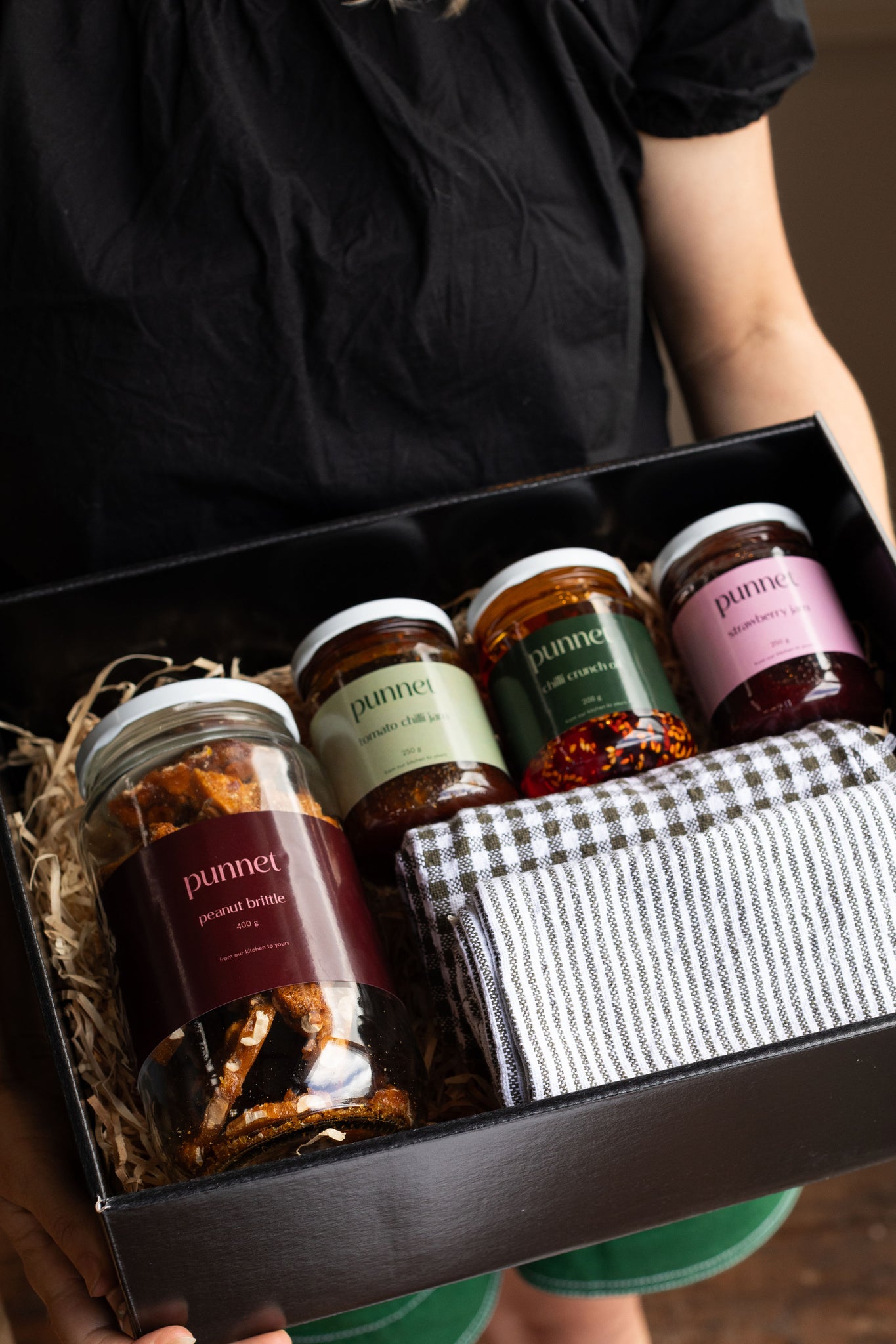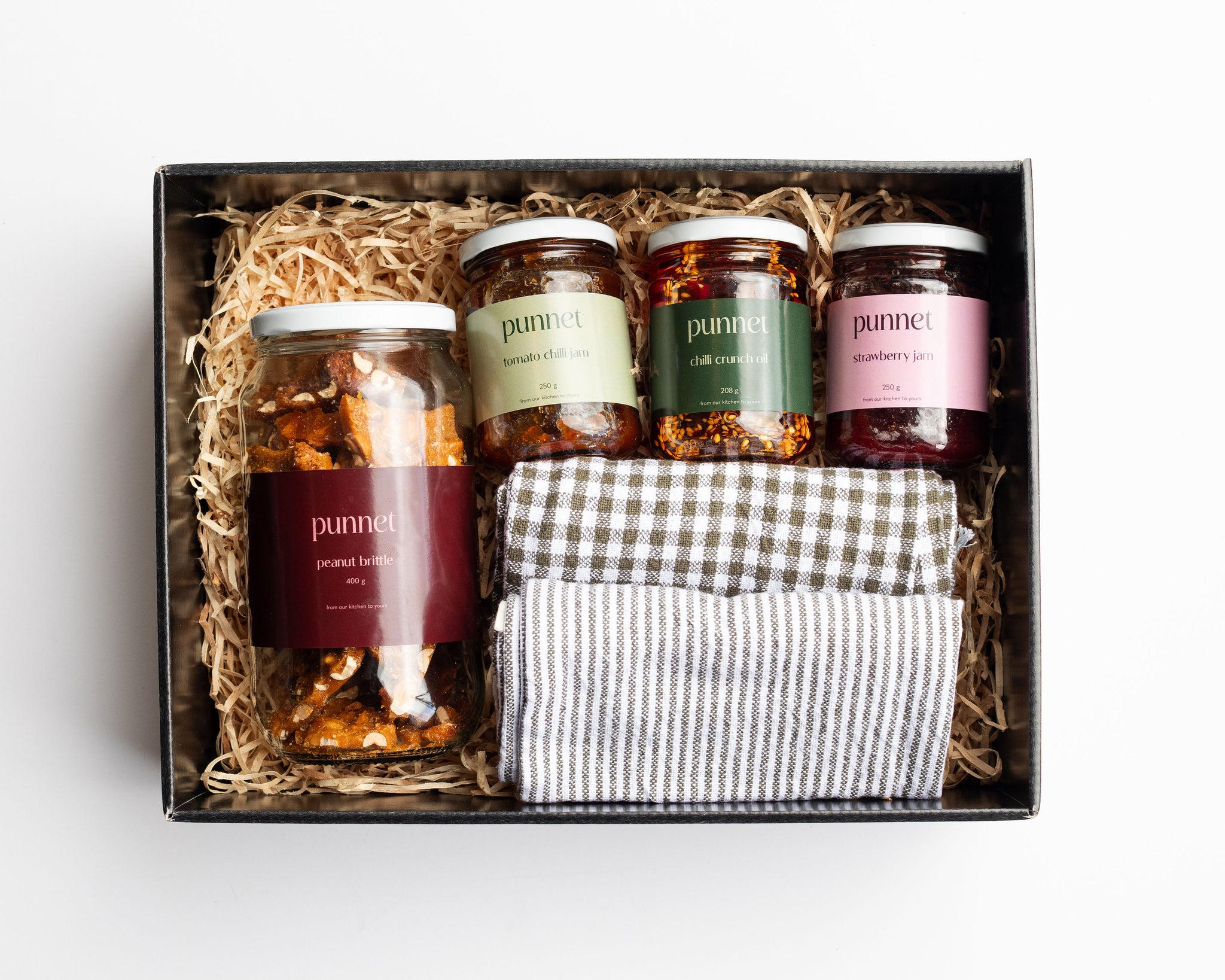 A selection of Punnet classics with 2 Citta Tea Towels packaged in a Punnet Gift Box.